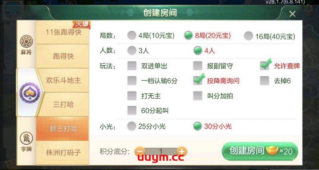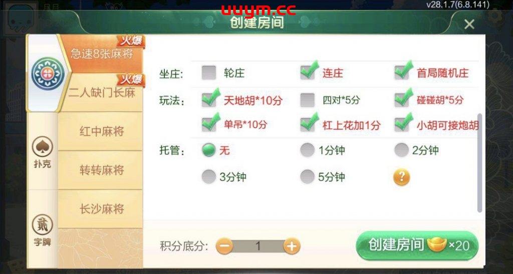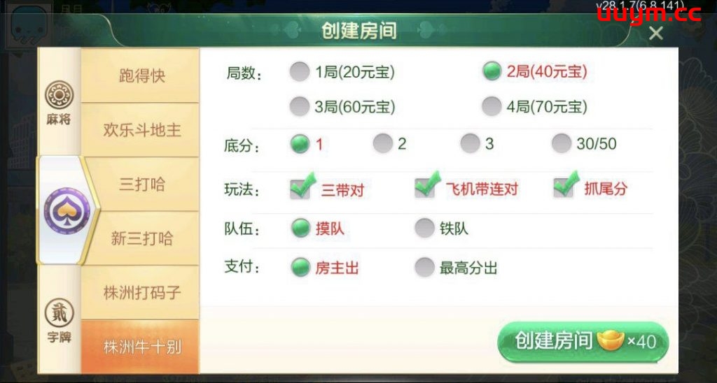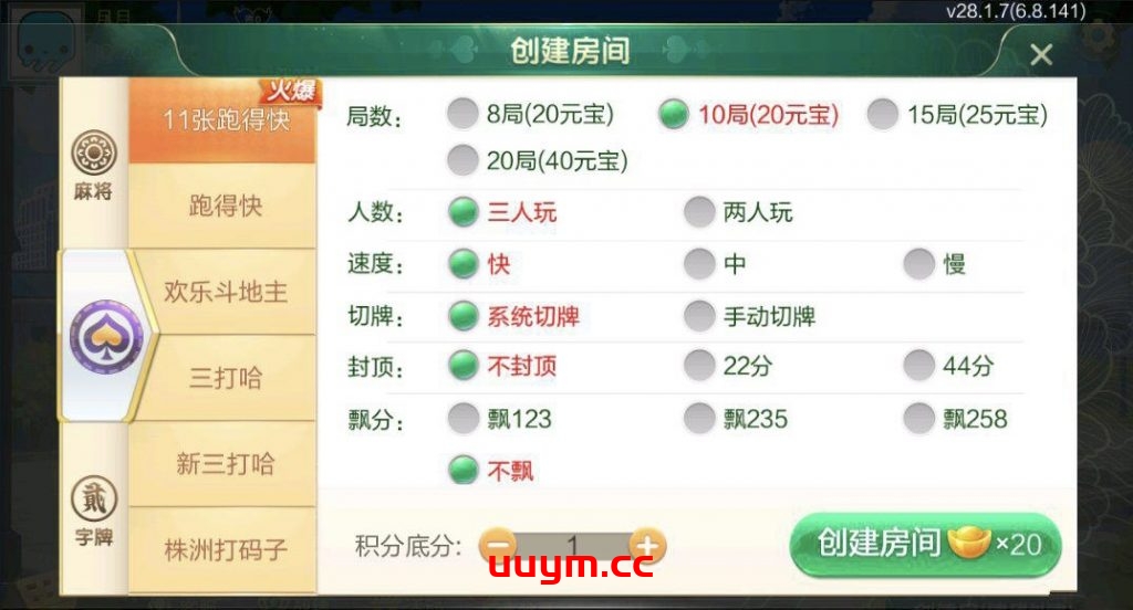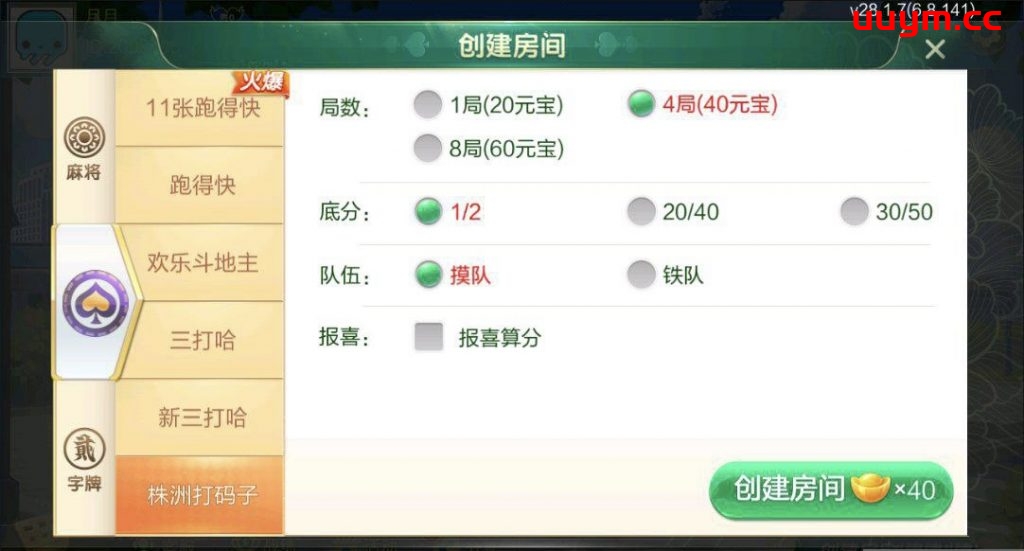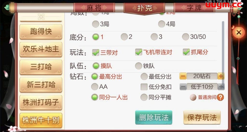 麻将:急速8张麻将,二人缺门长麻,长沙麻将,转转麻将,红中麻将 扑克:11张跑得快,跑得快,斗地主,三打哈,新三打哈,株洲打码子,株洲牛十别 字牌:株洲碰胡