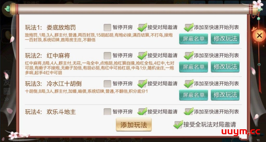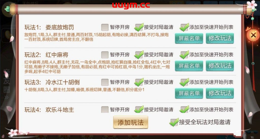 麻将:急速8张麻将,长沙麻将,转转麻将,红中麻将 扑克:11张跑得快,跑得快,斗地主 字牌:娄底放炮罚,冷水江十胡倒