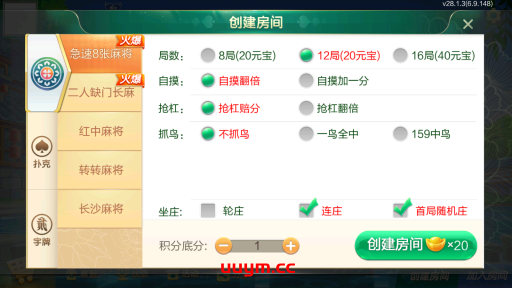 麻将:急速8张麻将,二人缺门长麻,长沙麻将,转转麻将,红中麻将