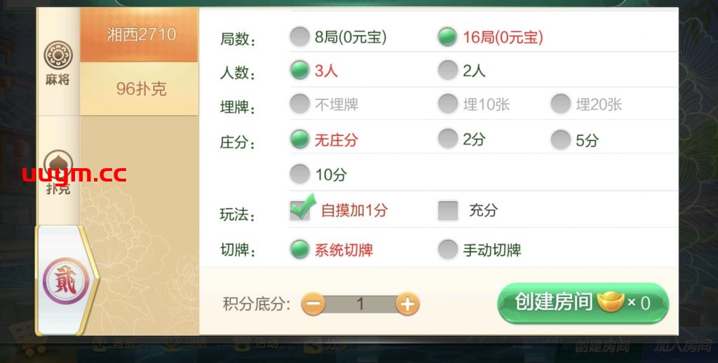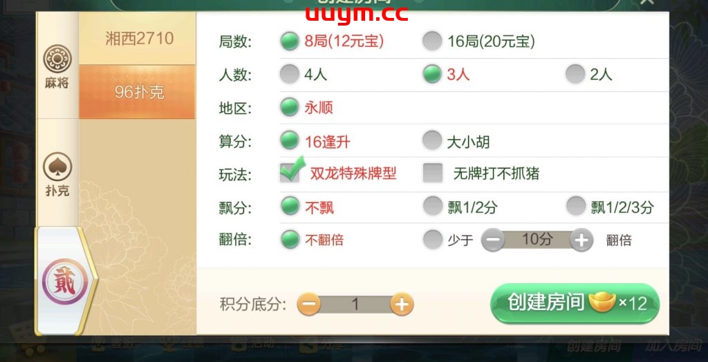 字牌:湘西二七十,96扑克
