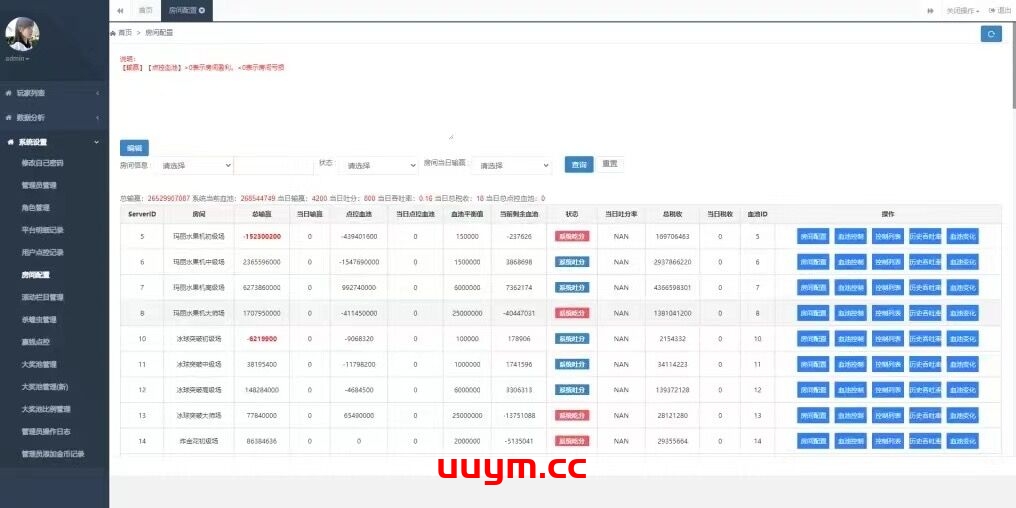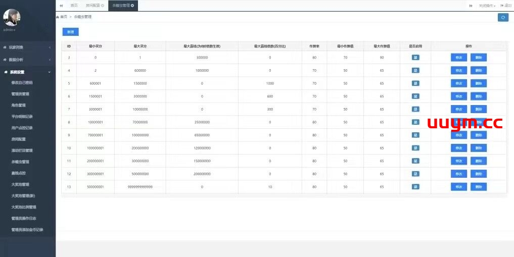 环境:window2012、SQL2017、phpstudy 后台控制子游戏:飞禽走兽、熊猫乐园、多福多财、僵尸新娘、冰城突破、月光宝盒、888、钻石777、李逵捕鱼、百人牛牛、二十一点、炸金花、水果玛丽、法老王、雷神、绿叶水果、比翼双飞、水果777、铜雀台、埃及法老