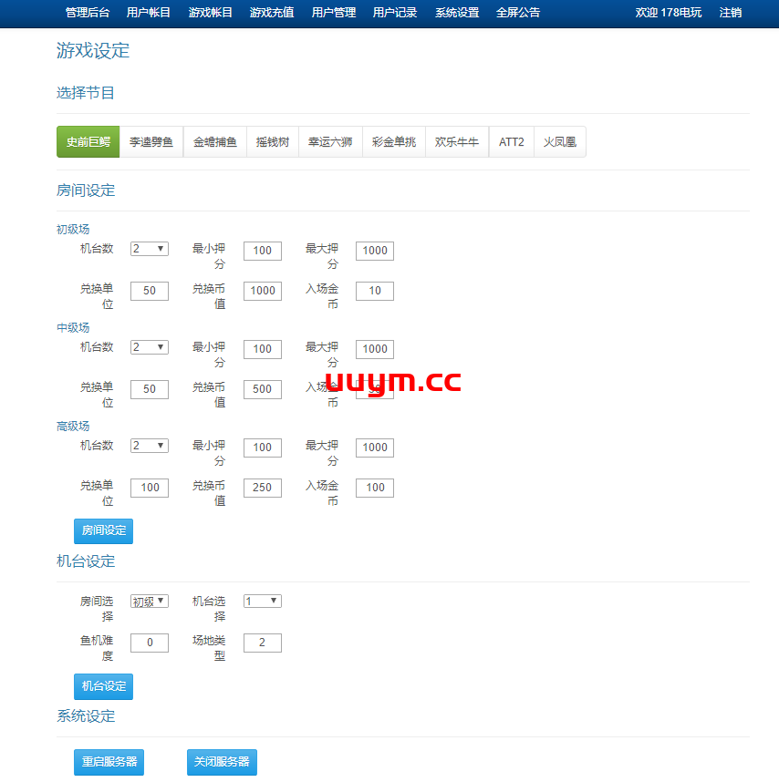 运营街机捕鱼游戏娱乐方面,后台功能,控制端强大,UI设计简洁,178玩城分为三种类型游戏,其中有玩、捕鱼、纸牌。
