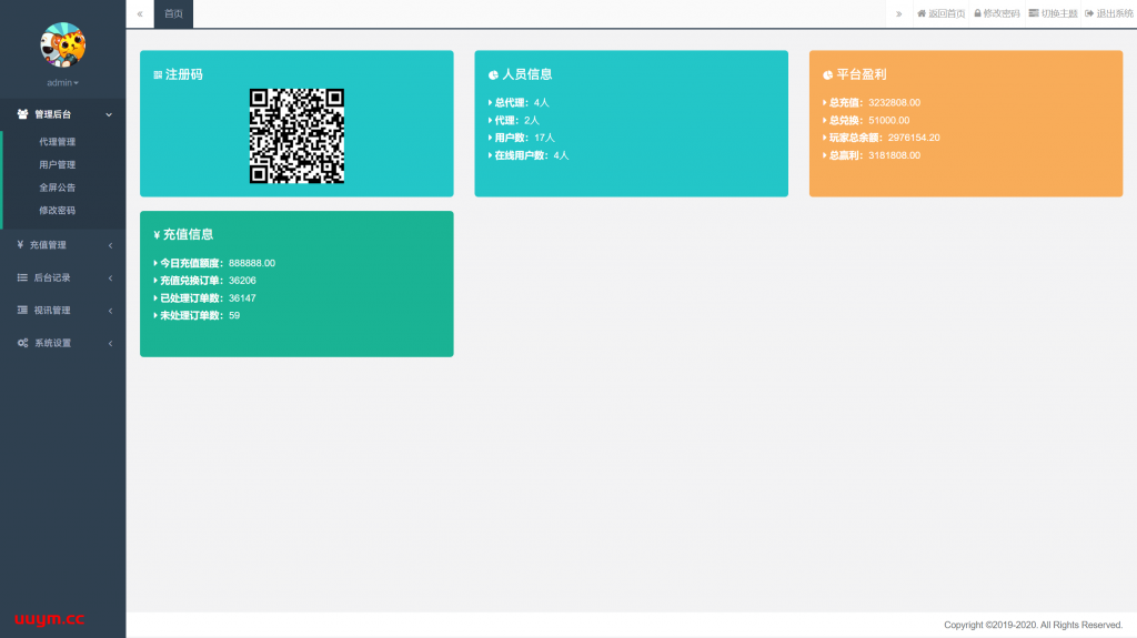 后台管理系统采用.NET和php开发,支持多种功能模块,包括数据监控、用户管理和游戏控制。