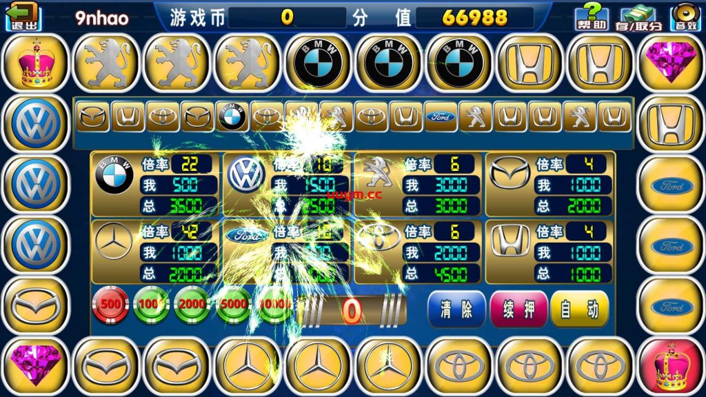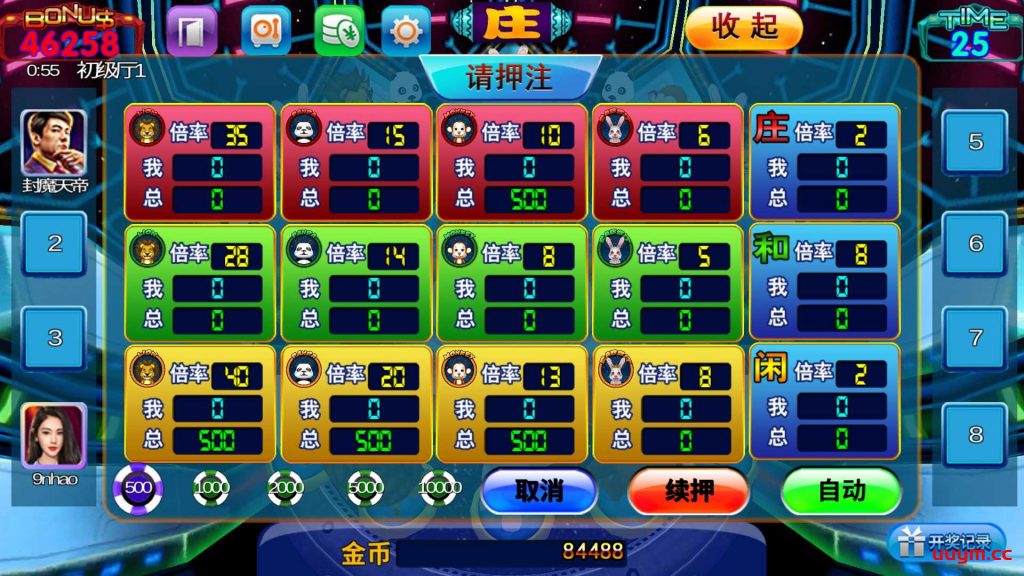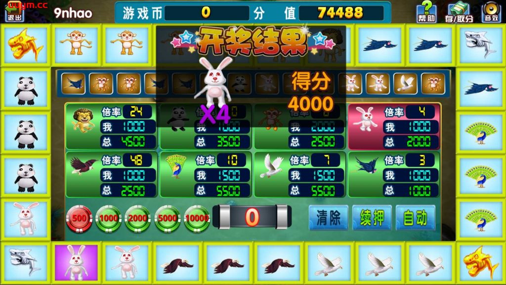 摇钱树、金蟾捕鱼、渔乐无穷、幸运六狮、牛魔王