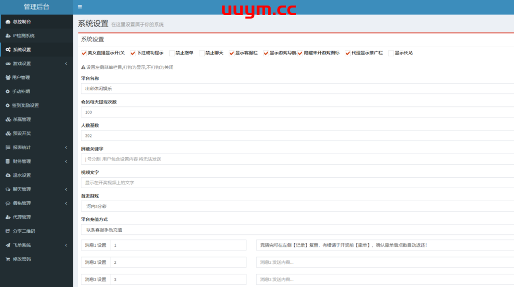 对接了最近的采集视频api采集接口,程序UI设计美观大方,多款游戏玩法,后台功能强大可以自行在后端设置开奖结果,以及自带的系统C修改赔率等操作。