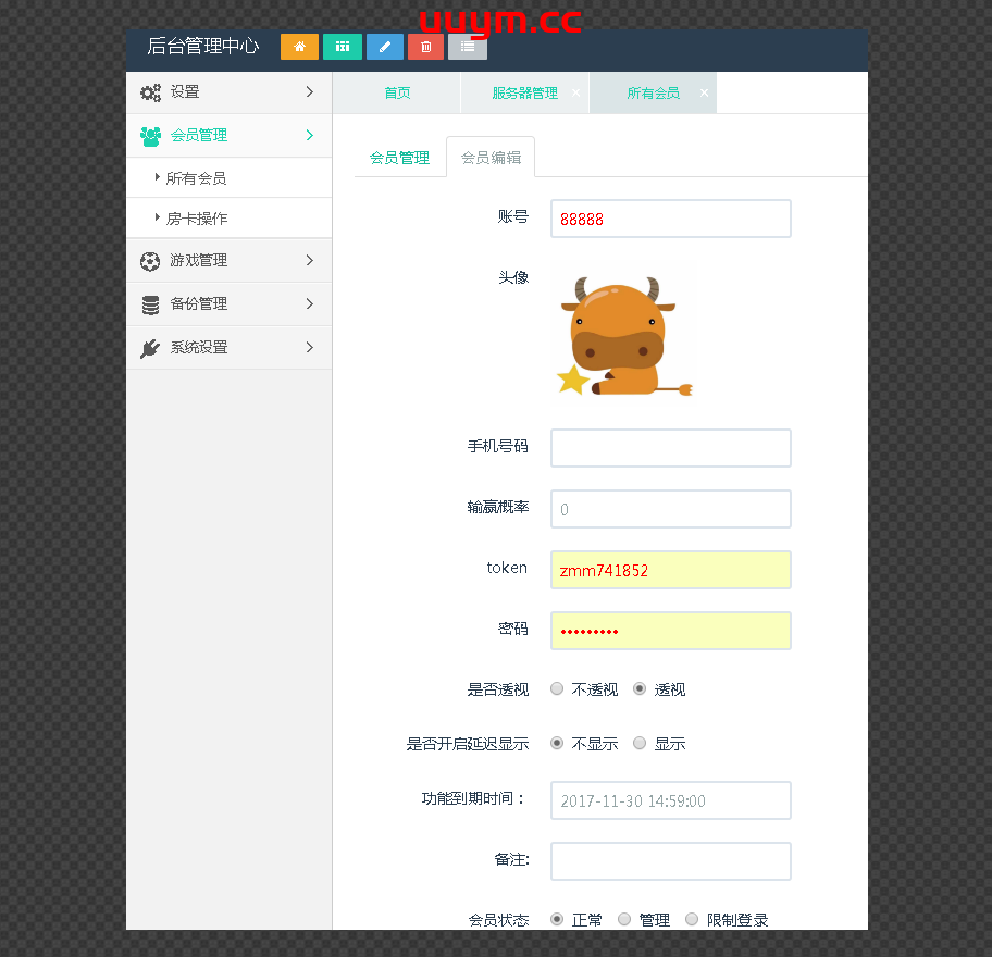 五神兽修复和完善功能包括:后台用户精准控制、12人牛牛无卡,实现顺畅运行,房间翻牌错误、小吃大,积分计算等之类BUG。