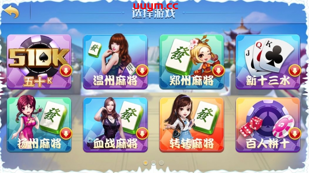 游戏:510K,温州麻将,郑州麻将,扬州麻将,血战麻将,转转麻将,新十三水,百人拼十,炸金花,比鸡,红中麻将,血流成河,广东麻将,大庆麻将,本溪麻将,万安麻将,抚州麻将,斗地主。