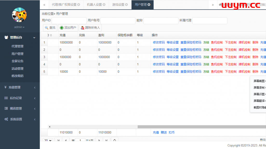 这套全是接近完美的一套星途,双端完整。界面UI和街机电玩输赢算法完全是一比一的仿以前市面上运营火爆的星力电玩游戏平台,也算是经典的电玩街机游戏平台了。前几个月本站发布的也是这款渔乐大咖+星途电玩,但那款是没有智能陪玩机器人的,本站的SVIP会员可以先免费下载那款搭建研究下,那款只是少了几款新游戏没有机器人bug比较多,现在这套比较完整,带陪玩机器人,除了点击月入百万功能会卡,其他没啥毛病,算是比较完美了,这款平台的搭建视频教程以前也上传好了的。