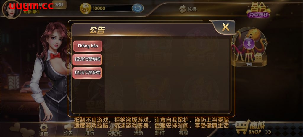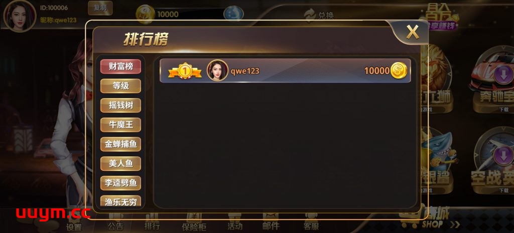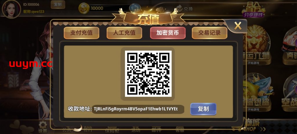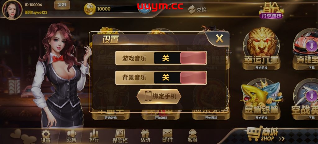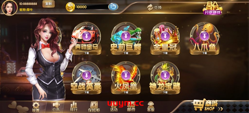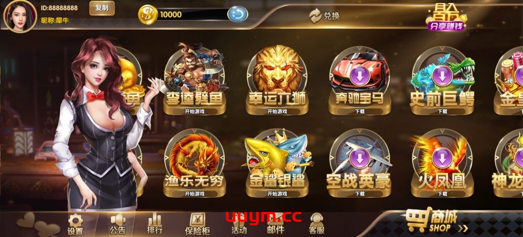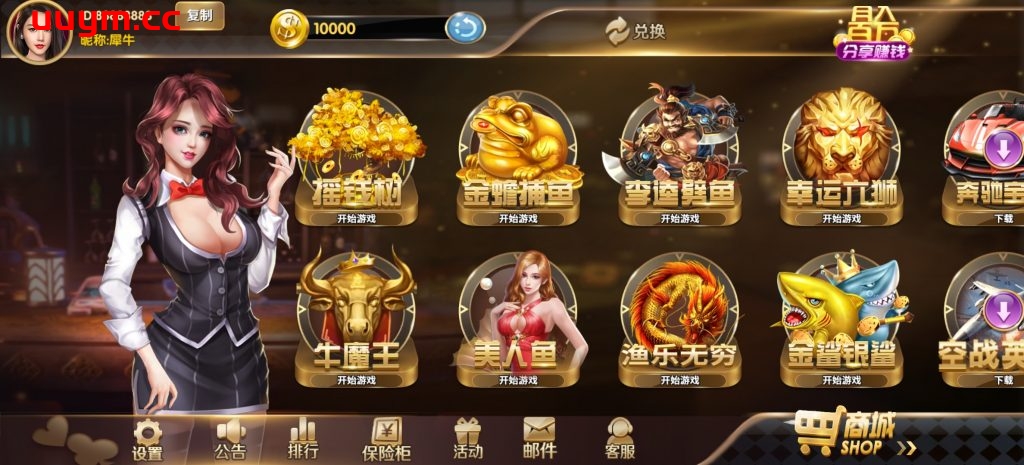 子游戏:摇钱树,金蟾捕鱼,李逵劈鱼,单挑,牛魔王,美人鱼,渔乐无穷,幸运六狮,单挑(ATT连环炮)金鲨银鲨,空战英豪,火凤凰,神龙宝藏,奔驰宝马,史前巨鳄,金皇冠,八爪鱼。